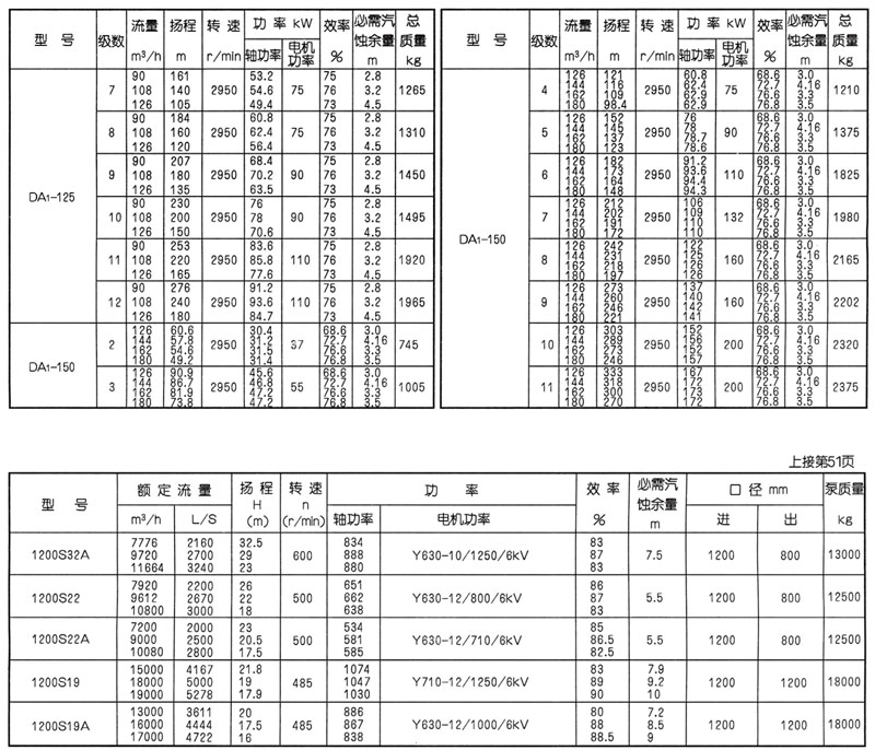 型號意義:如DA1-100X5。100-泵進(jìn)、出口直徑(mm),5-泵的級數。