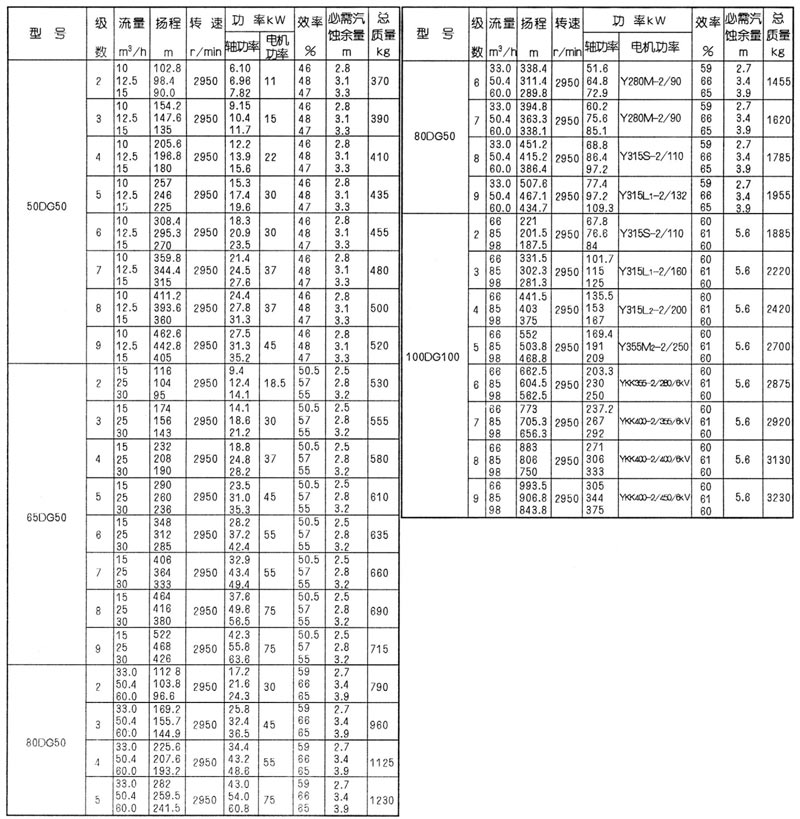 泵型號中的意義:如80DG50。80-泵進(jìn)、出口直徑(mm);50-單級揚程(m)。