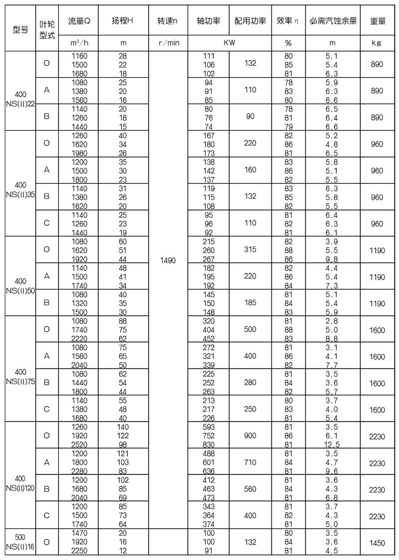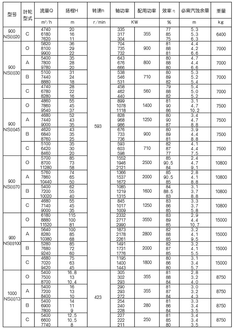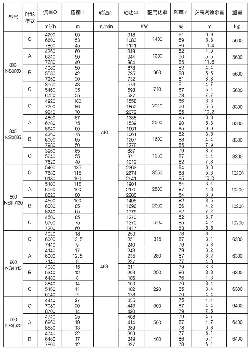 NS(Ⅱ)型泵具有很高的效率,在較寬的流量范圍內具有很高的運行效率,可以降低運行費用和選用功率較小的電機,是節能的高效率中開(kāi)泵。