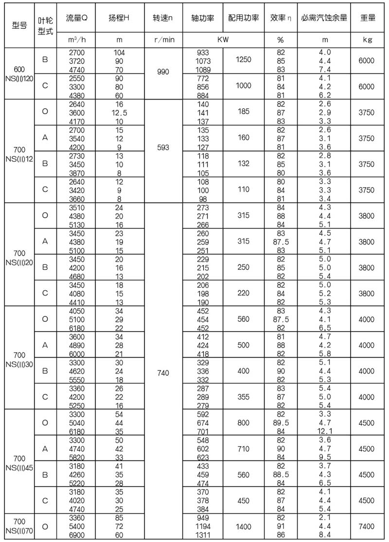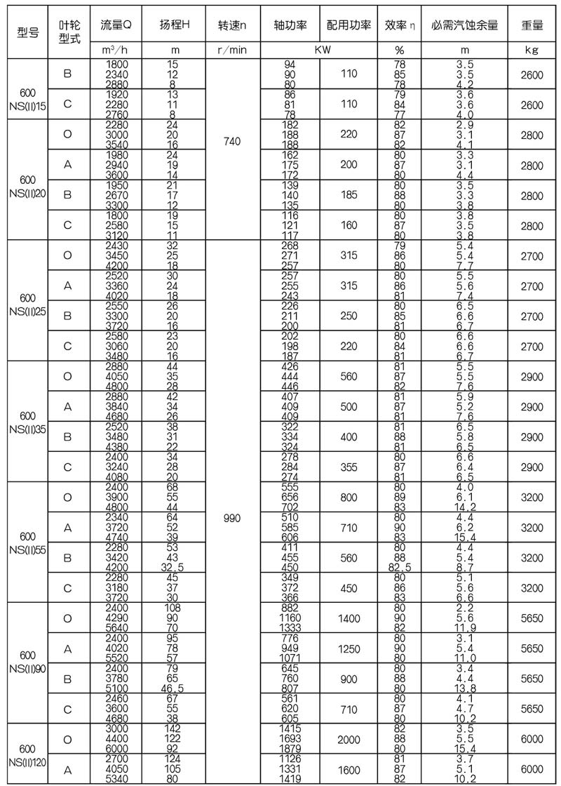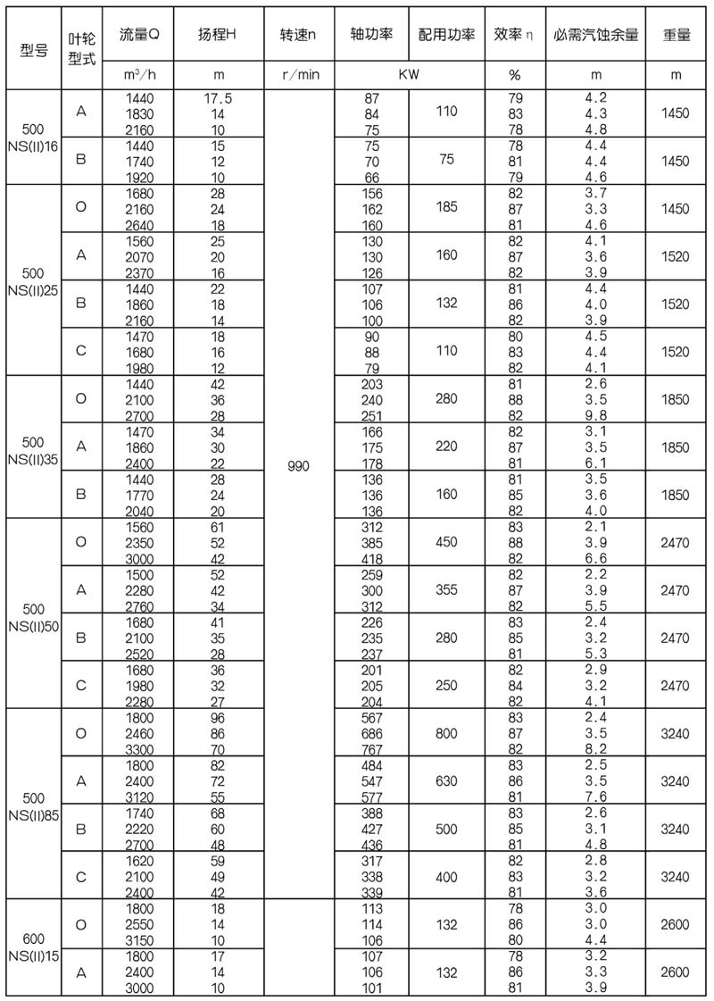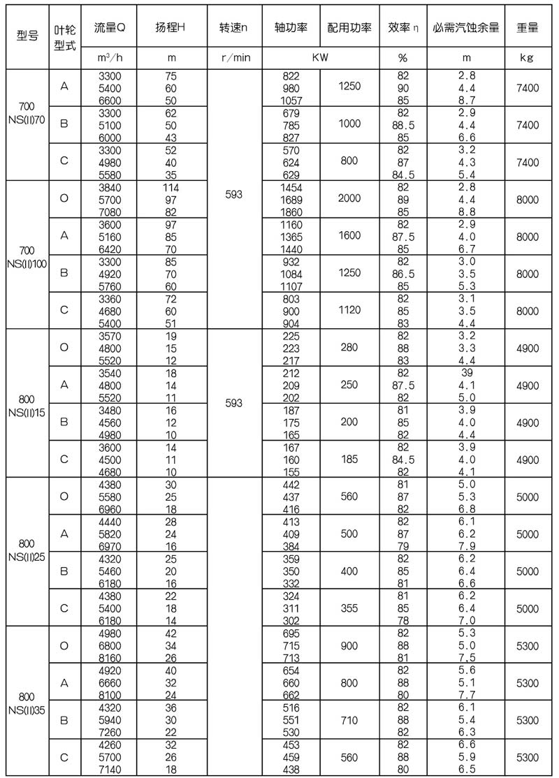 NS(Ⅱ)型泵具有很高的效率,在較寬的流量范圍內具有很高的運行效率,可以降低運行費用和選用功率較小的電機,是節能的高效率中開(kāi)泵。