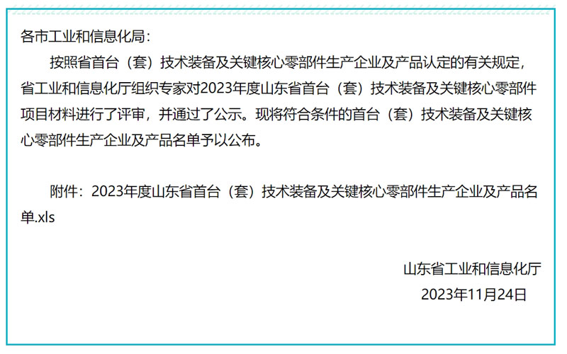 按照省首臺(套)技術(shù)裝備及關(guān)鍵核心零部件生產(chǎn)企業(yè)及產(chǎn)品認定的有關(guān)規定,經(jīng)各市工業(yè)和信息化局推薦,專(zhuān)家評審等環(huán)節,擬將286種產(chǎn)品列入《2023年度山東省首臺(套)技術(shù)裝備及關(guān)鍵核心零部件企業(yè)及產(chǎn)品名單》